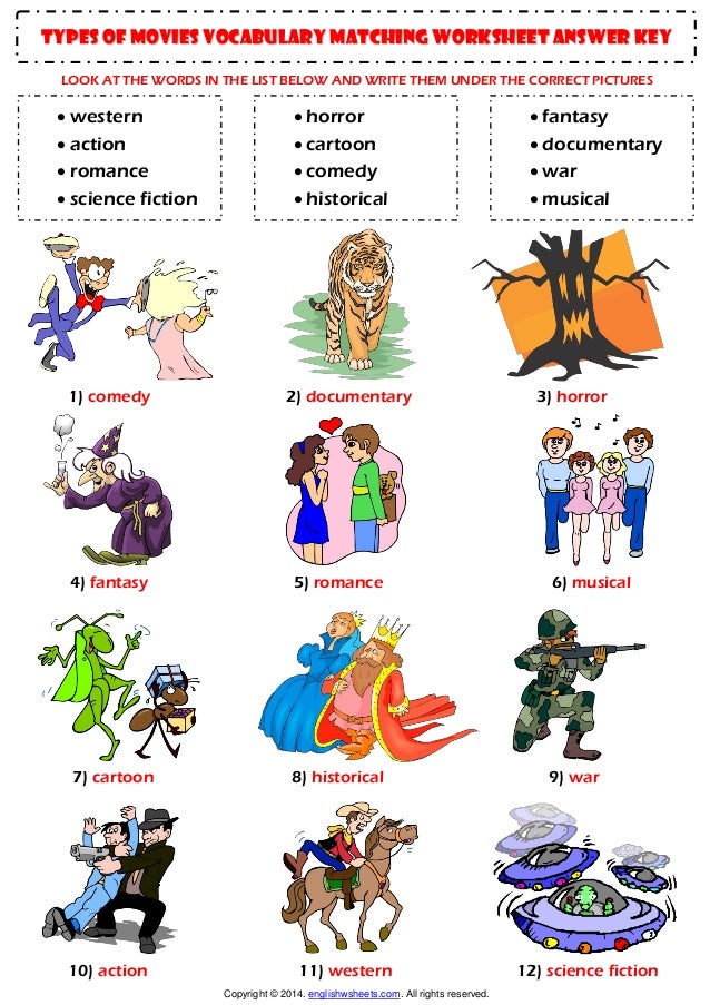 Types Of Films Movies Esl Vocabulary Matching Exercise Worksheet